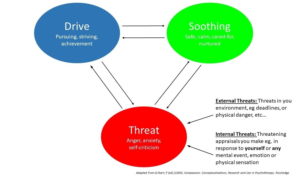 1) Drive system ( motivation, achievement, want-to-do-something-awesome kind of stuff that pushes us) 2) Threat system ( Primitive, the survival instinct, run from danger, avoid risk, don’t jump you fool.. all that stuff) 3) Soothing system ( the ‘human’ touch, rest, support, care, kindness, peace )Yeah, already the modern life that we live in is stressful. It is. Add a nice little global pandemic to the mix and you have the perfect recipe for getting stressed. So much so that our threat system has taken the centre stage. We are all affected by it in someway or the other. Insecurity, anxiety, uncertainty have kept the threat system activated ( remember that threat system is primitive, most powerful, the one which used to make sure that we take caution and hide or run so that the neighborhood lion doesn’t eat us for breakfast.. ) and it usually resolves in frustration, rage - of course not out in the open. Just under the skin, You know it but no one else has to have any clue.