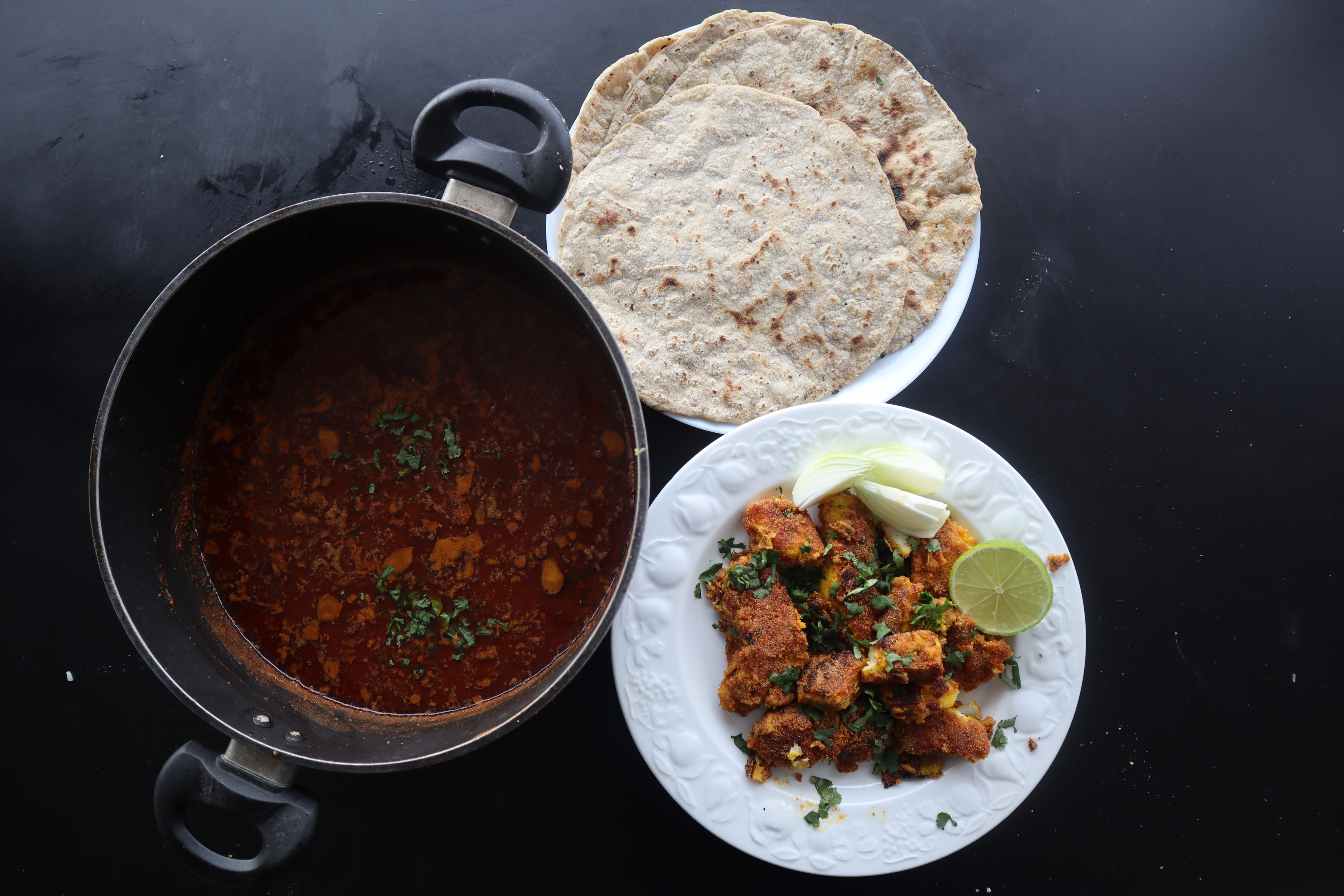 The Norwegian word for cod fish is “torsk”. It was kind of love at first sight when we saw this nice 7-800 gms of Torsk fillet without skin at our local fresh fish store. My mother-in-law, who is a truly gifted cook is visiting us here in Copenhagen so Wife and I knew that it's now or never to try different fish than the usual Salmon ( We still love you Salmon. Salmon, don't hate us for this one-lunch-stand!). So me and MIL bought this fresh torsk and headed home.. few hours later we were eating this delicious fish fry and curry with traditional Indian flat bread ( Bhakri ).